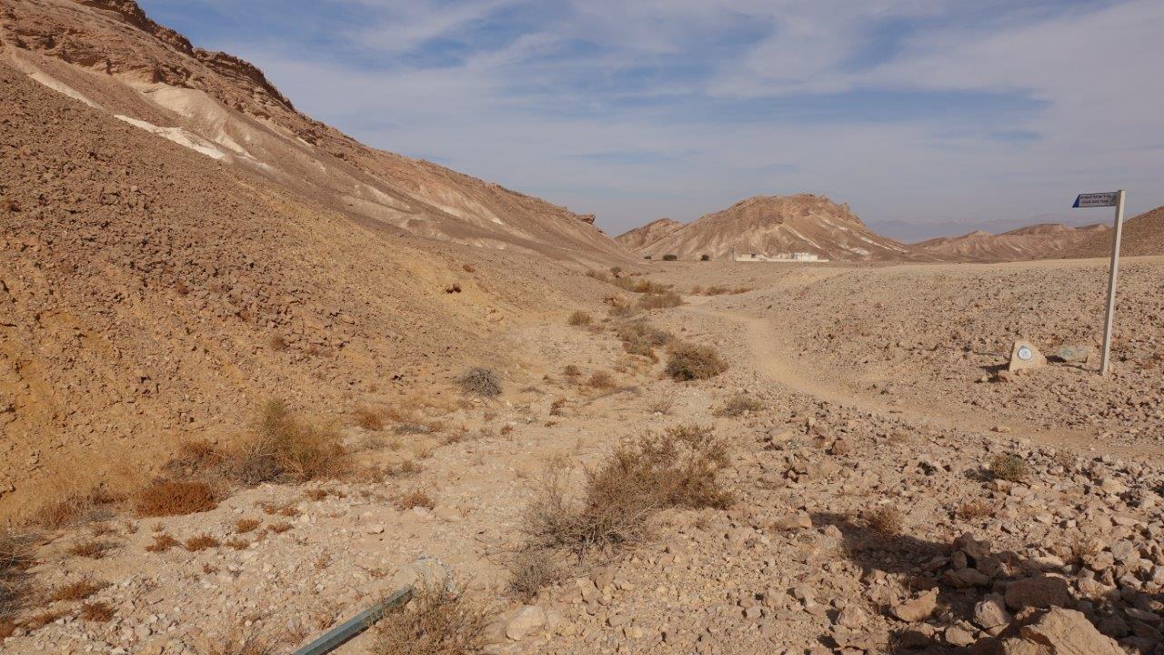 נרכוב במעלה אפיקו המתפתל של נחל עד למפגש עם דרך ג'יפים מסומנת אדום. נחצה אותה ונגלה תצפית יפה אל עבר פתחת נחל פארן, הגדול שבנחלי האכזב בישראל.